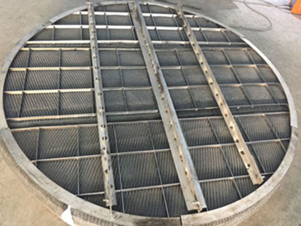 絲網(wǎng)除沫器首要是由絲網(wǎng)、絲網(wǎng)格柵組成絲網(wǎng)塊和固定絲網(wǎng)塊的支承設(shè)備構(gòu)成,絲網(wǎng)為各種原料的氣液過(guò)濾網(wǎng),氣液過(guò)濾網(wǎng)是由金屬絲或非金屬絲組成。氣液過(guò)濾網(wǎng)的非金屬絲由多股非金屬纖維捻制而成,亦可為單股非金屬絲。
